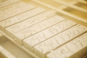 Die Qualitätssicherung beginnt bereits im Steinbruch. Das Bohrmehl, welches beim Herstellen der für das Sprengen notwendigen Bohrlöcher anfällt, wird von unserem Betriebslabor analysiert. Nach Auswertung der Zusammensetzung wird das Rohgestein den weiteren Produktionsprozessen zugewiesen.